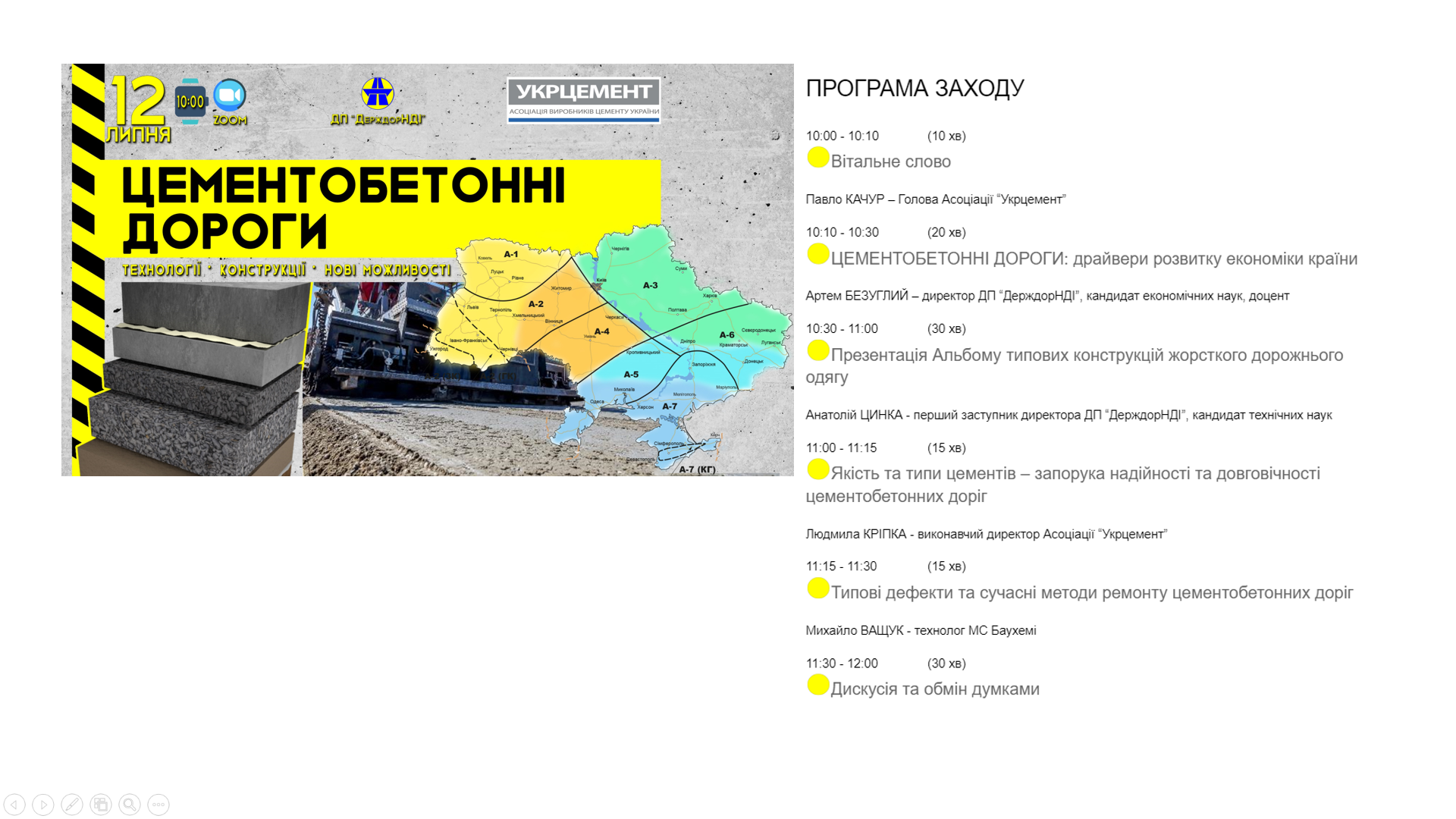 12 липня 2022 року команда ДП "ДерждорНДІ" провела презентацію Альбому конструкцій жорсткого дорожнього одягу через ZOOM.