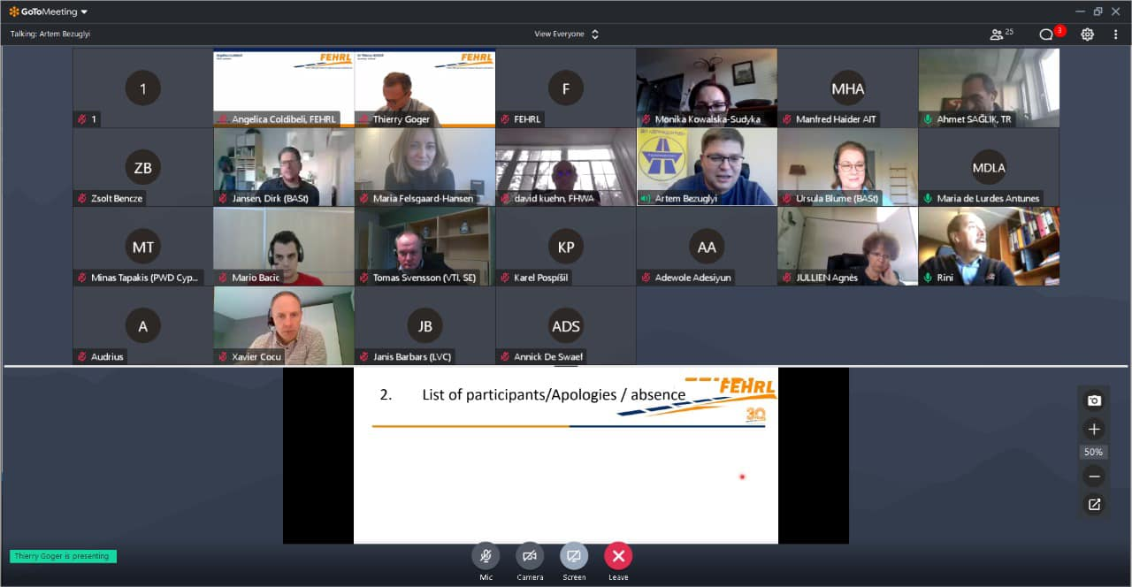 22 листопада 2021 року директор ДП «ДерждорНДІ» Артем Безуглий взяв участь у онлайн-засіданні Генеральної асамблеї Міжнародної асоціації європейських дорожніх та транспортних науково-дослідних інститутів FEHRL.