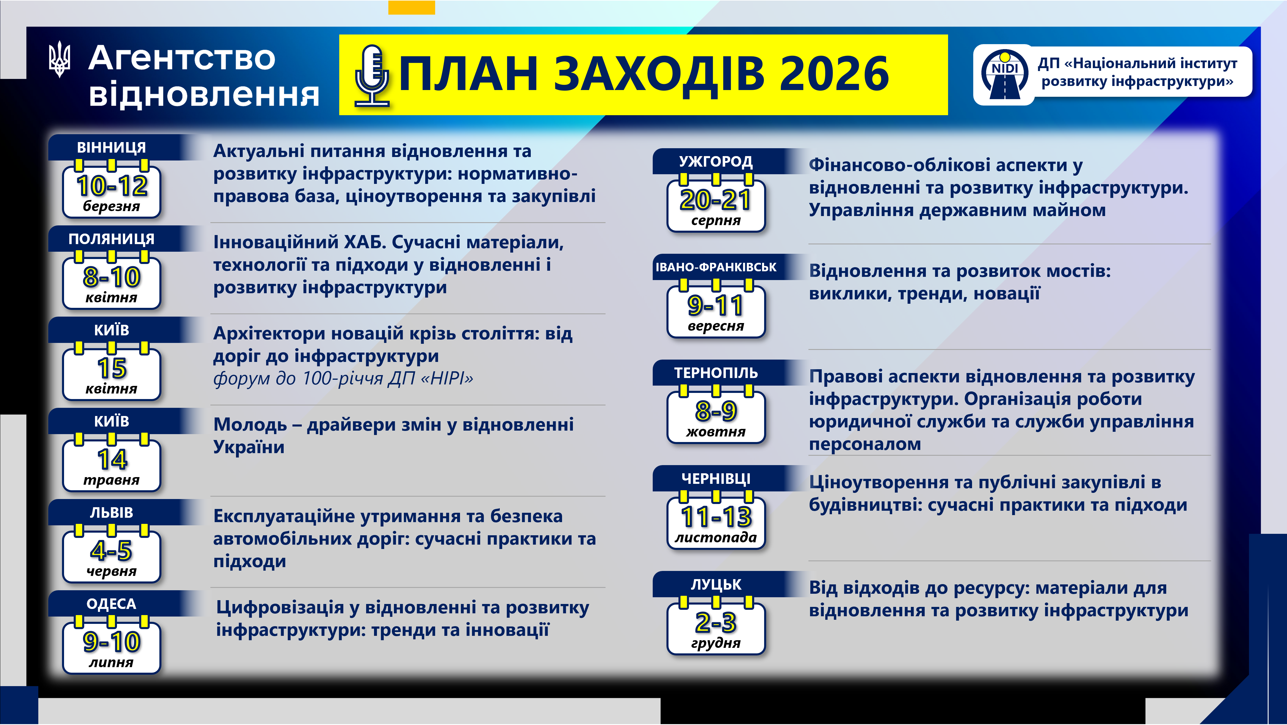 The SE “National Institute for Development Infrastructure”, with the support of the State Agency for Restoration and Development Infrastructure of Ukraine, plans to hold a series of scientific and practical events in 2026.