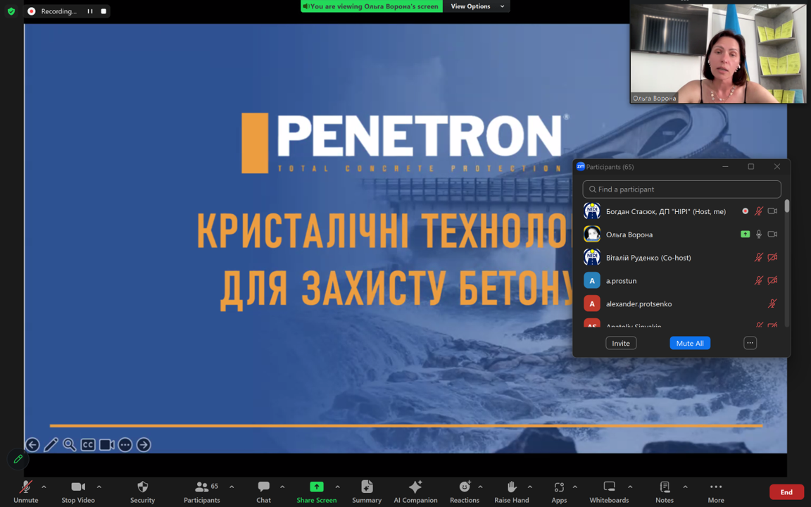 The team of the State Enterprise "National Institute of Infrastructure Development held the 40th edition of the Innovation Platform, where about 100 experts, namely , namely, balance holders, designers, customers and other companies reviewed modern crystalline waterproofing materials presented by Penetron Ukraine LLC.