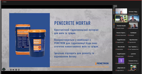 The event discussed the possibilities of a modern system of innovative materials for waterproofing and protecting concrete PENETRON, which can be used in the course of work on the protection of concrete structures from the negative effects of water and water-soluble chemicals in order to increase the service life of the structure, as well as reducing the cost of their further maintenance.
