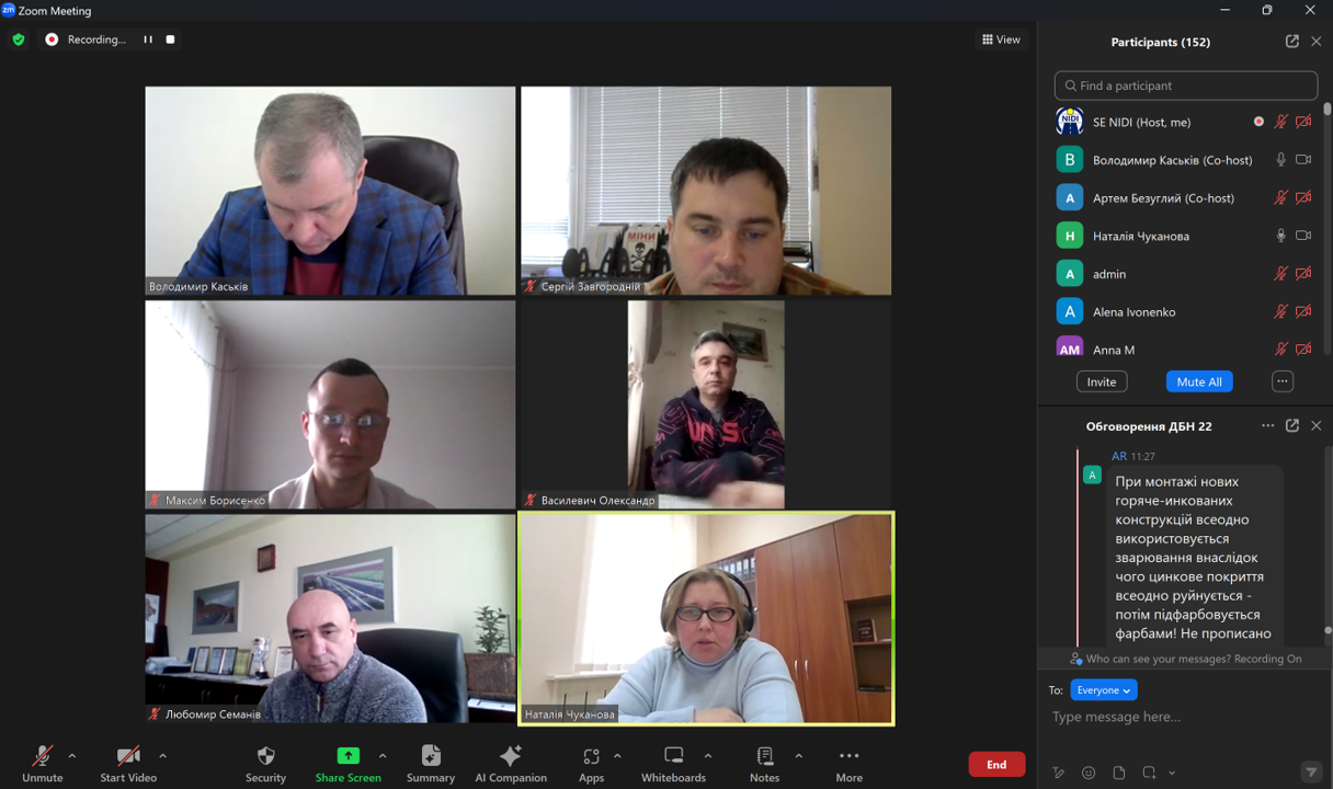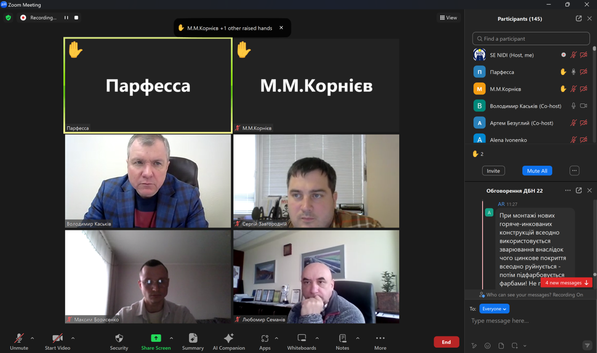 Під час заходу обговорили актуальні питання щодо класів наслідків і коефіцієнтів надійності, можливості прокладання ліній електропередач і комунікацій на мостах, використання збірно-монолітних плит, антикорозійного захисту елементів моста шляхом гарячого цинкування і фарбування, питання щодо призначення отворів труб тощо.