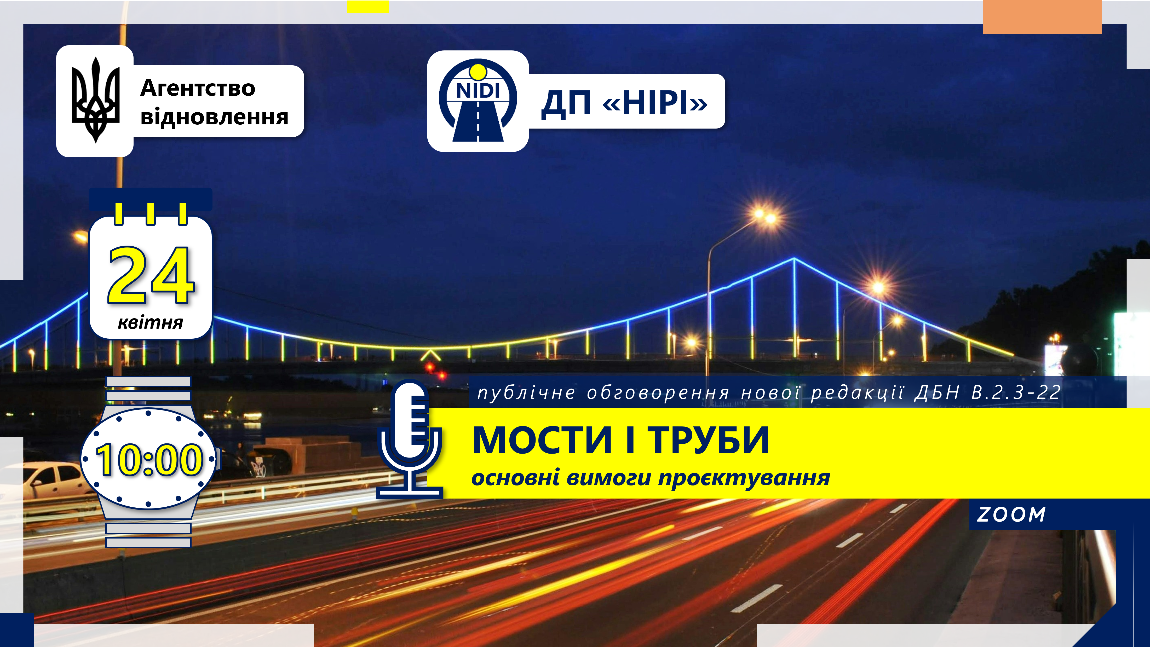 24 квітня команда ДП "Національний інститут розвитку інфраструктури" провела публічне обговорення другої редакції проєкту ДБН В.2.3-22:202Х «Мости і труби. Основні вимоги проєктування».