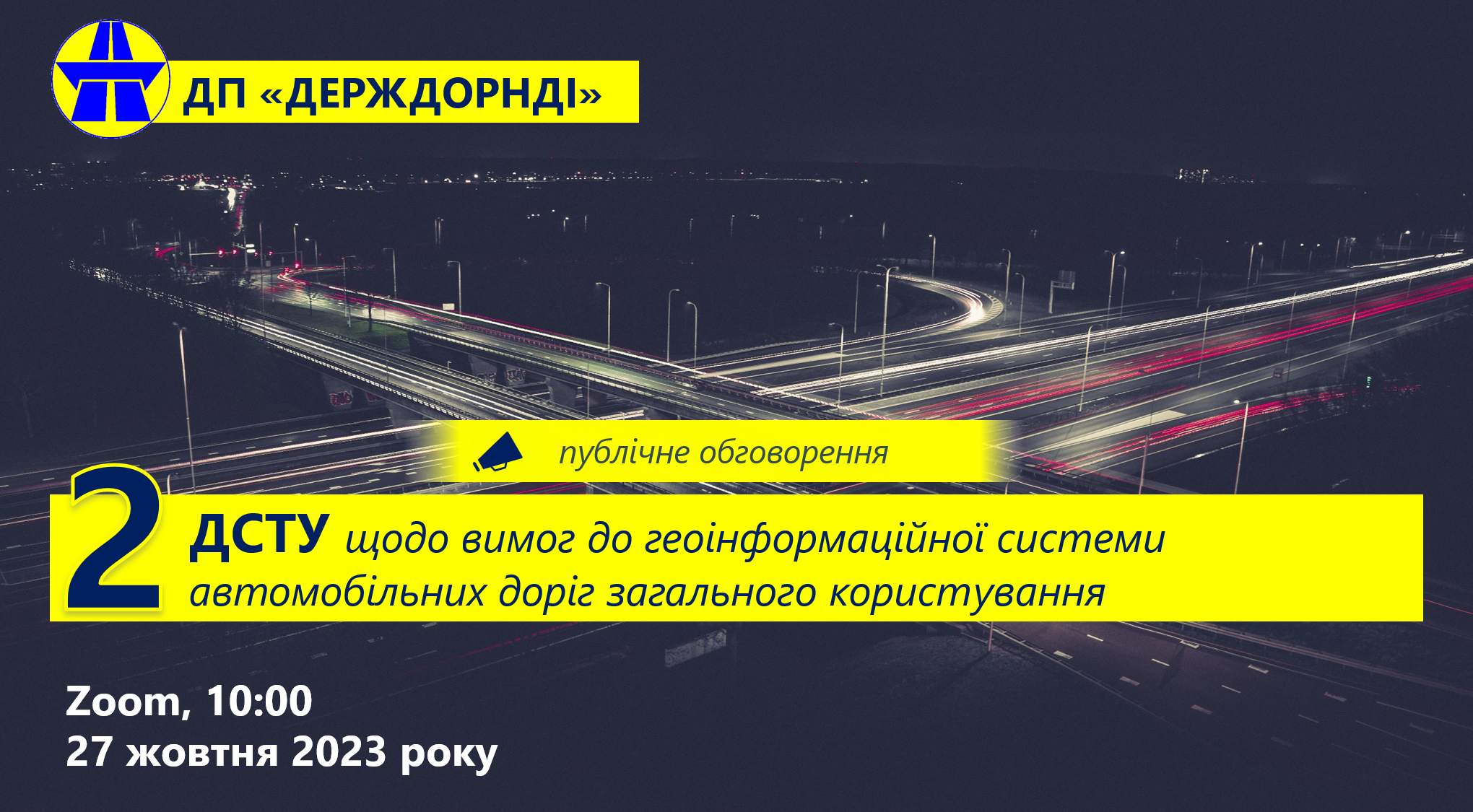 Колеги, вже завтра, 27 жовтня, о 10:00 проводимо обговорення ДСТУ щодо вимог до геоінформаційної системи автомобільних доріг!