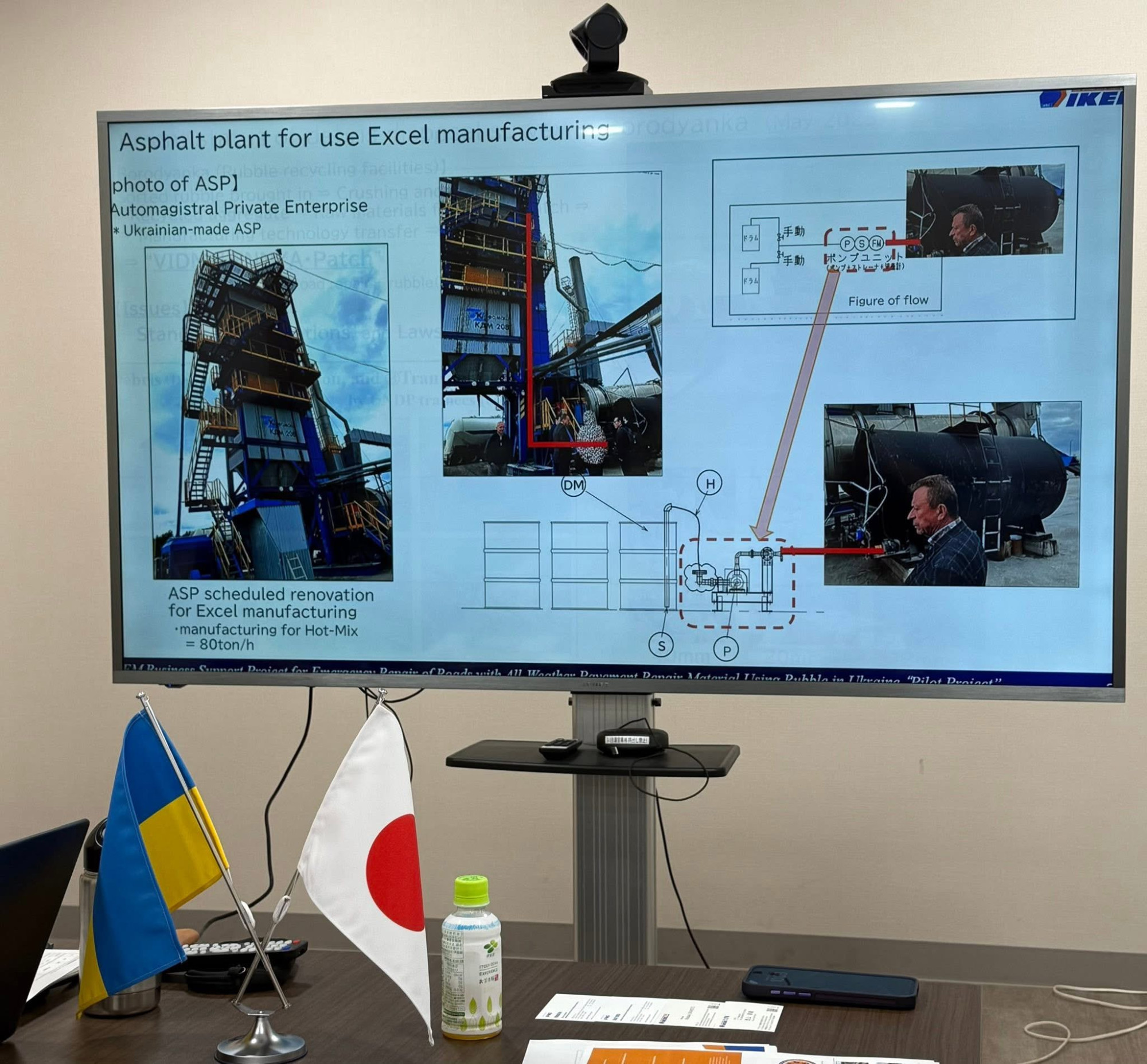 В ході візиту також ознайомились з різними технологіями ремонту та утримання автомобільних доріг, підходами в організації виконання дорожньо-будівельних робіт, що застосовуються в Японії. Особливу зацікавленість викликав проєкт повторного використання пластикових кришечок від пляшок у виготовленні асфальтобетонних сумішей.