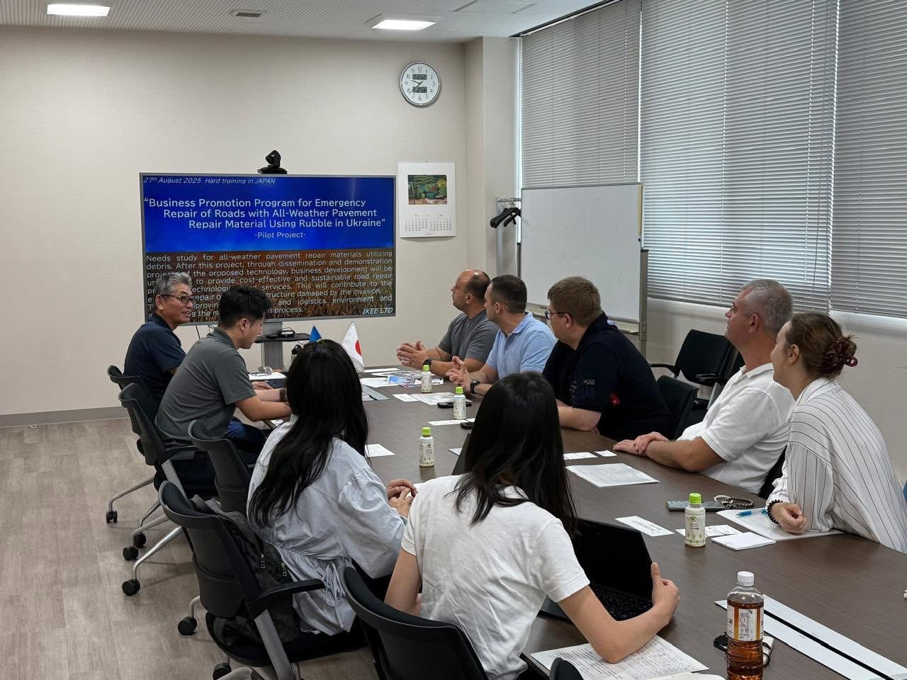З 27 серпня по 01 вересня директор ДП "Національний інститут розвитку інфраструктури" Артем Безуглий та начальник Центру досліджень розвитку та утримання об'єктів інфраструктури Сергій Ілляш в складі делегації Державного агентства відновлення та розвитку інфраструктури України брали участь у тренінгу в Японії (м.Мацуяма), під час якого ознайомились з японськими підходами до аварійного ремонту автомобільних доріг, зокрема з використанням вторинної сировини. Тренінг організовано японською дорожньо-будівельною компанією IKEE LTD в рамках програми “Сприяння бізнесу з термінового ремонту доріг за допомогою всепогодних матеріалів для ремонту дорожнього покриття з використанням щебеню в Україні”, що фінансується Японським агентством міжнародного співробітництва (JICA).