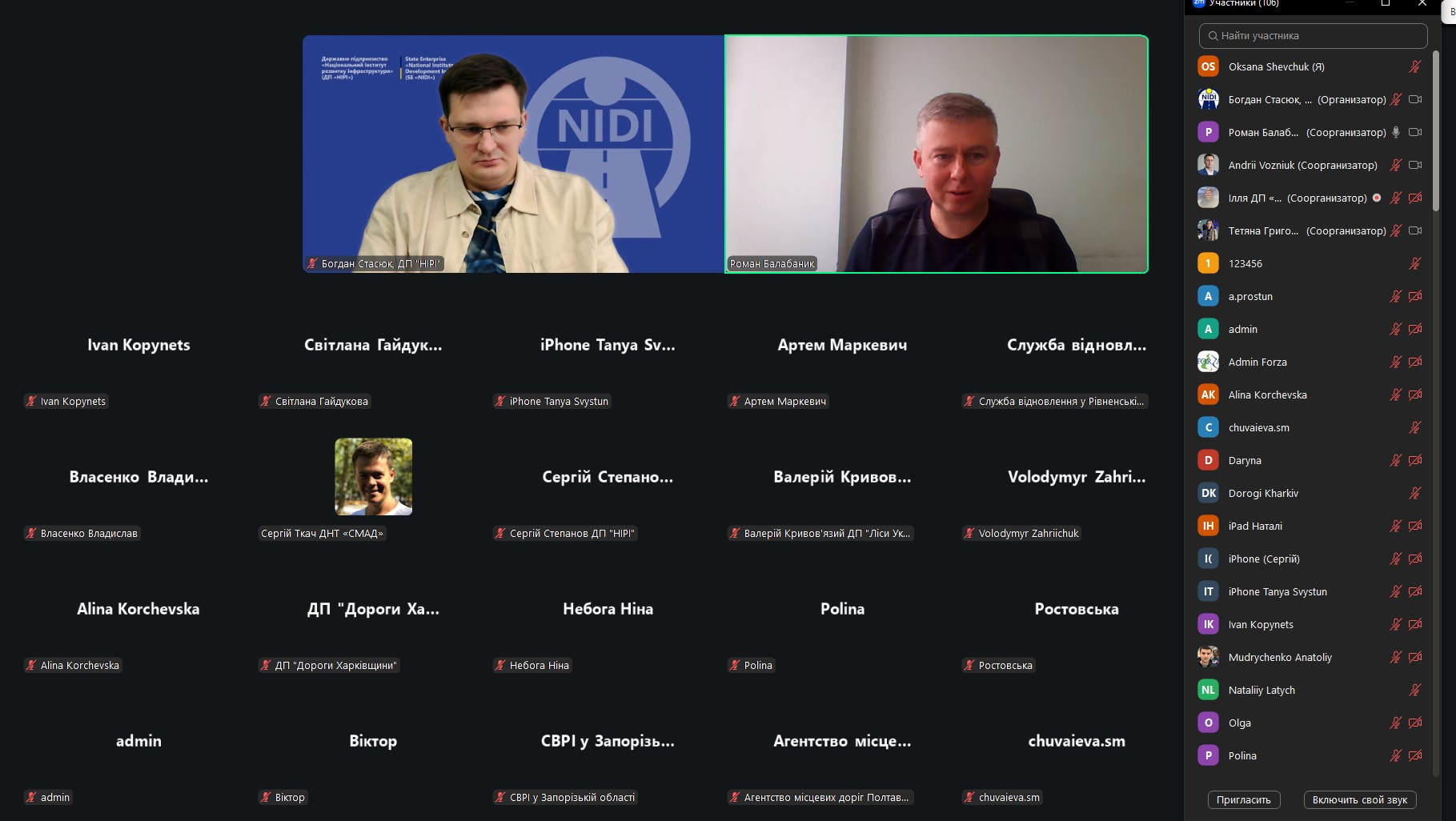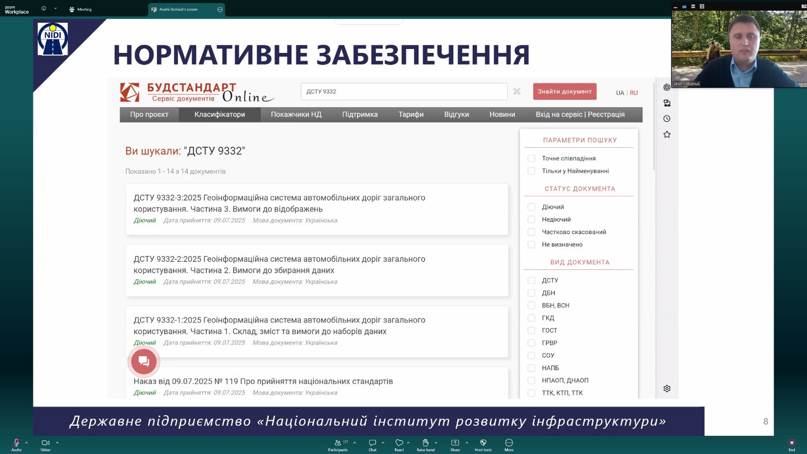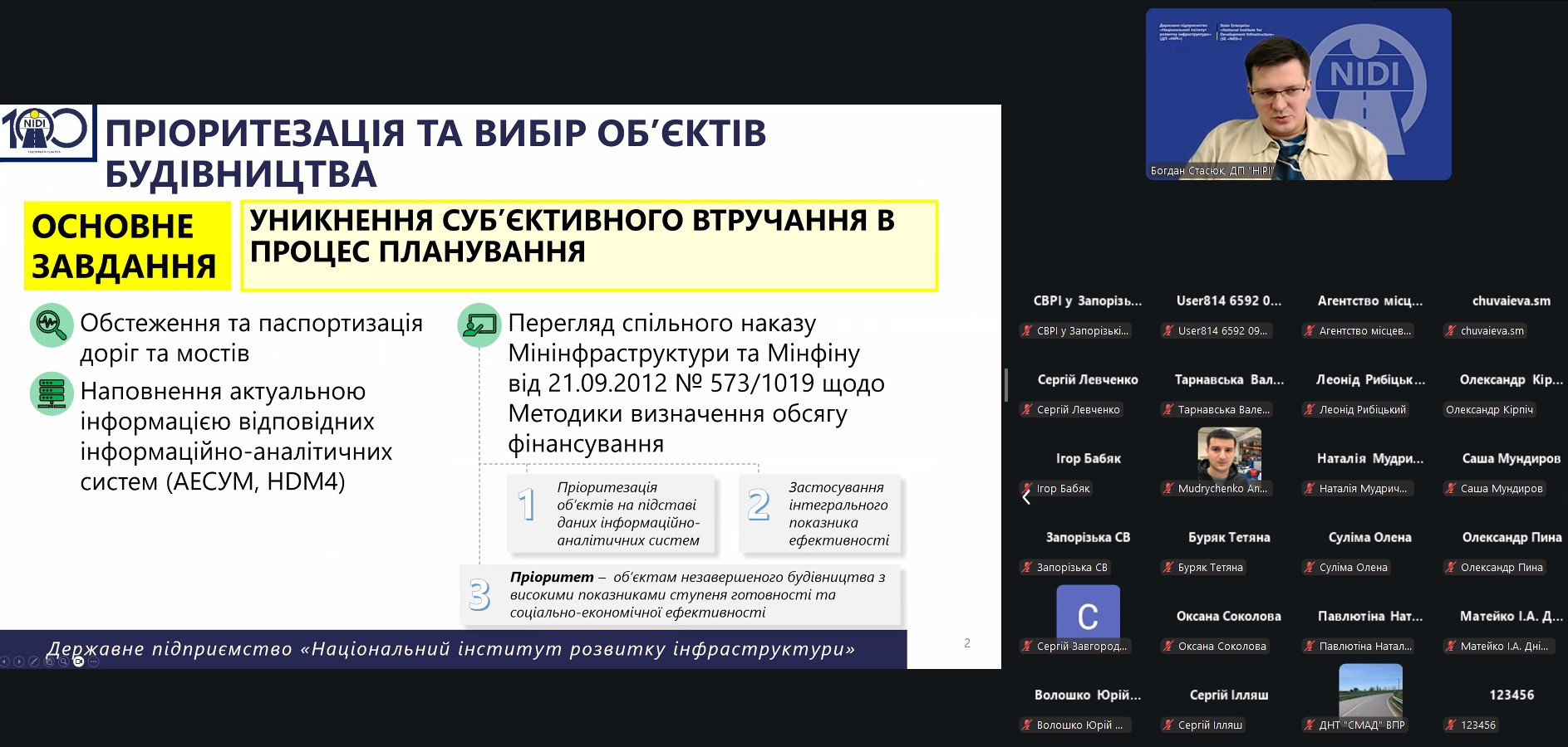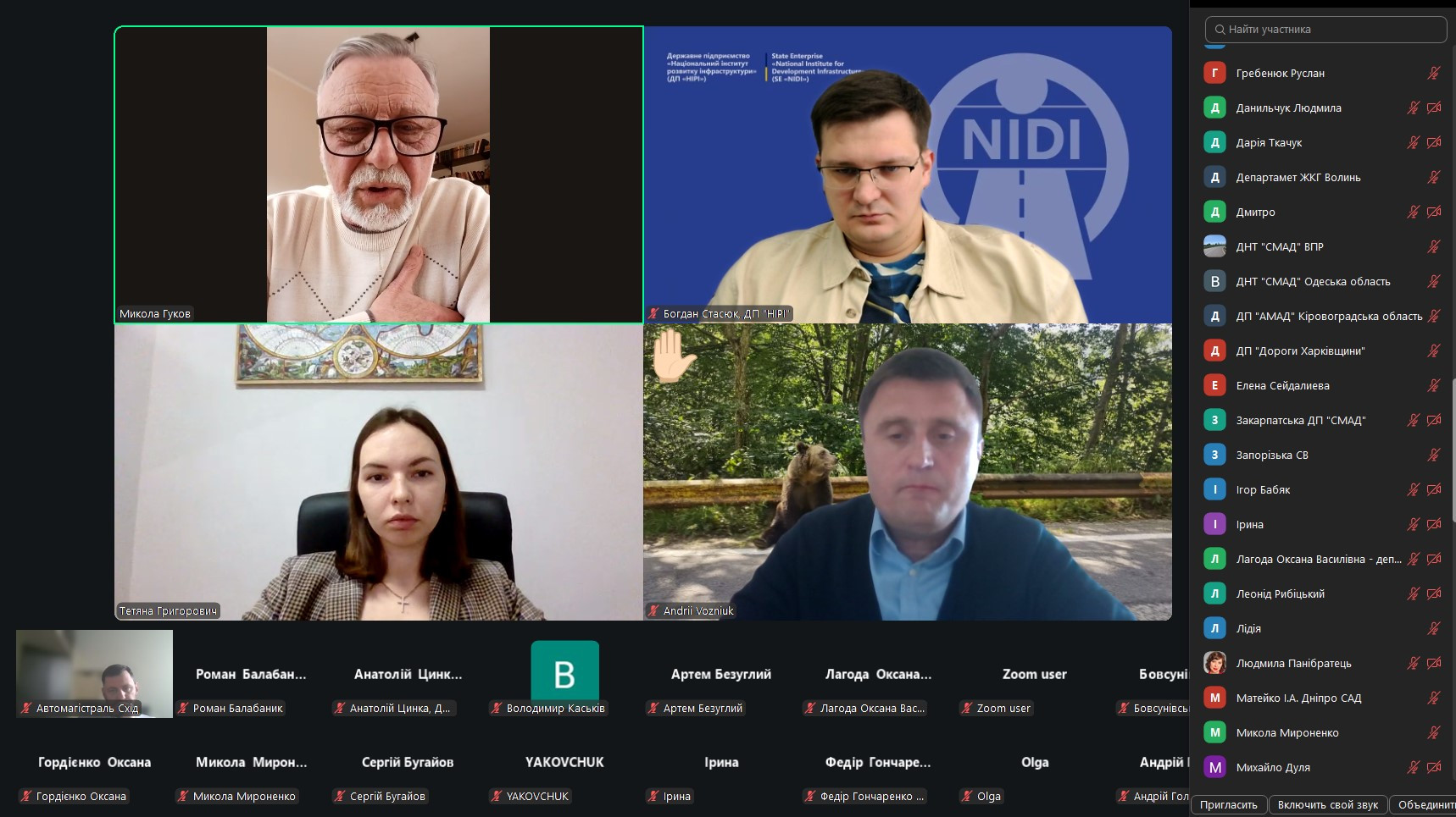 31 березня 2026 року команда ДП "Національний інститут розвитку інфраструктури" за підтримки ГО «ГІС-Кадастрова асоціація України» провела вебінар «Цифровізація управління автомобільними дорогами: прості інструменти для щоденної роботи», який зібрав понад 100 учасників з усієї України: це балансоутримувачі автомобільних доріг загального користування державного та місцевого значення, науковці, проєктувальники, підрядники, профільні асоціації та небайдужа громадськість.