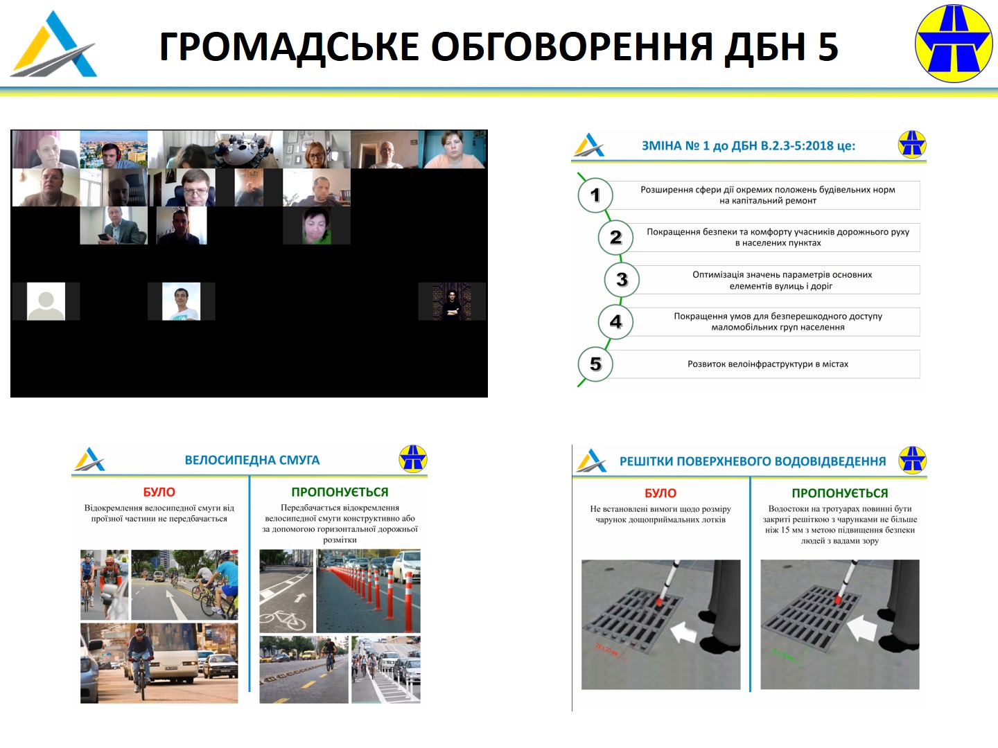 Сьогодні провели громадське обговорення проєкту Зміни № 1 до ДБН В.2.3-5 "Вулиці і дороги населених пунктів" - в онлайн-форматі.